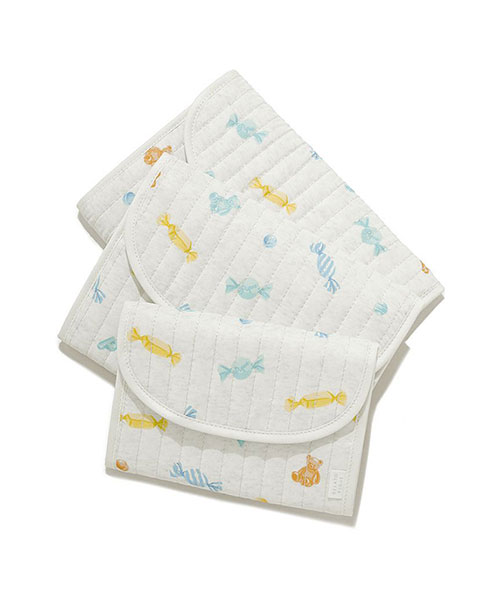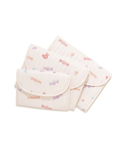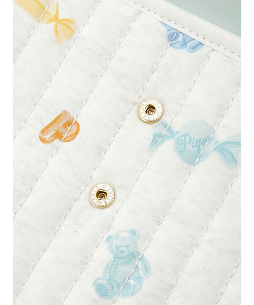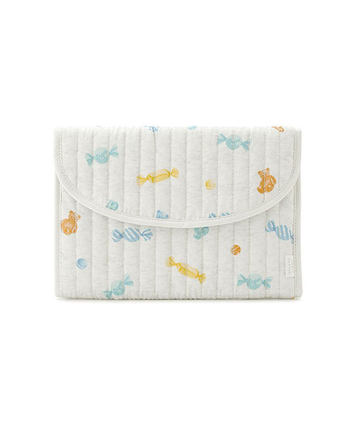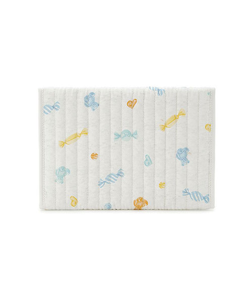 gelato piqueらしいカラフルなベアやロゴをモチーフにしたキャンディ柄を、ふっくらした手触りのキルティング素材にプリントした母子手帳ケースです。たっぷり入る抜群の収納力を備えたLサイズは、ファスナー付きのコイン入れやカード類のスリットなど、大小のポケットが18個ついています。複数人のお子様の母子手帳や病院の診察券をまとめておきたいときや、旅行や移動が多い方にも重宝するアイテム。裏地には抗菌防臭機能が付いた生地を使用しました。同シリーズのママバッグやKIDS、BABY小物と組み合わせたり、ルームウェアとのリンク・コーディネートもお楽しみいただけます。