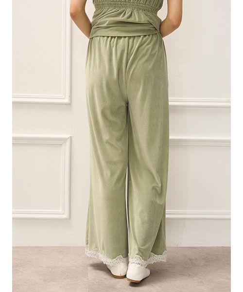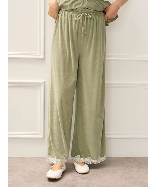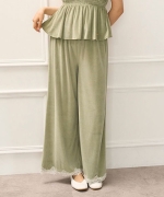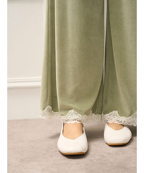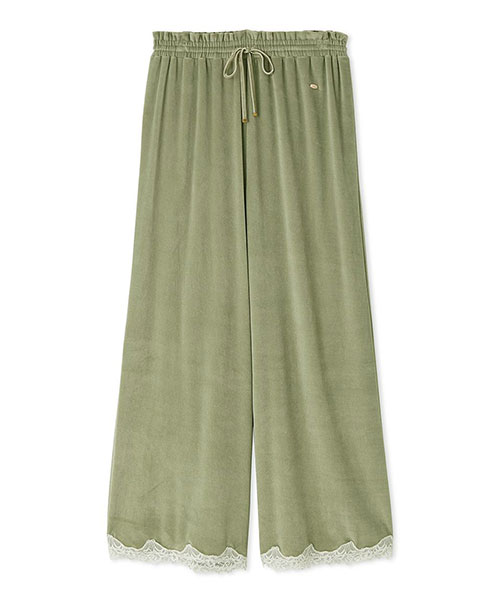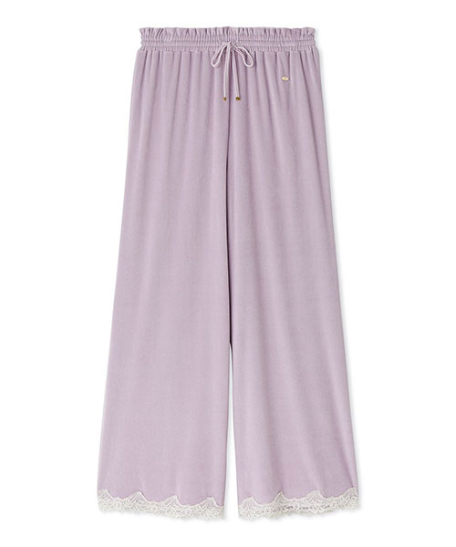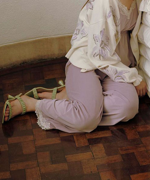 【MUCHA・リリー柄レースが咲いたベロア素材のロングパンツ】【Design/Styling】