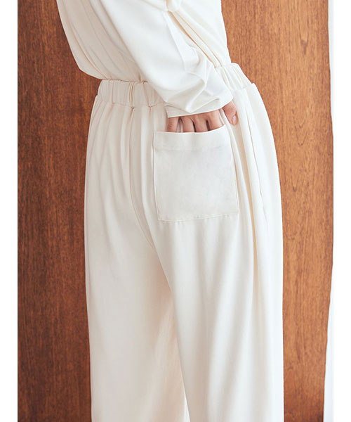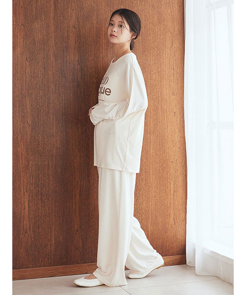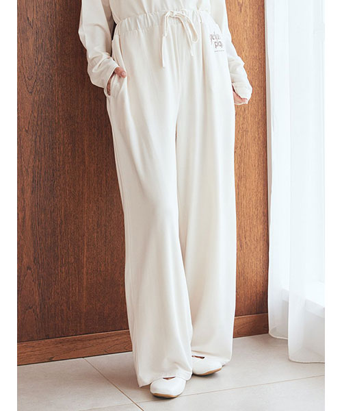 【心ほどけるなめらかさのレーヨンロゴロングパンツ】