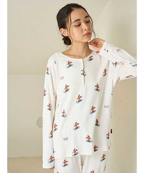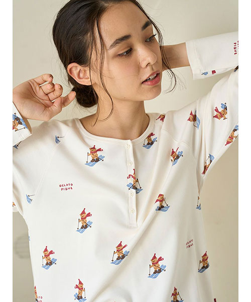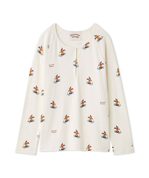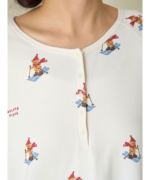 【HOLIDAY・スキーベアプリントのヘンリーネックロンT】【Fabric】