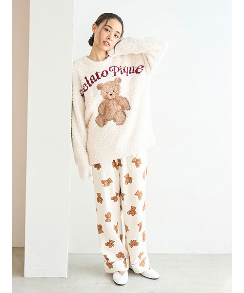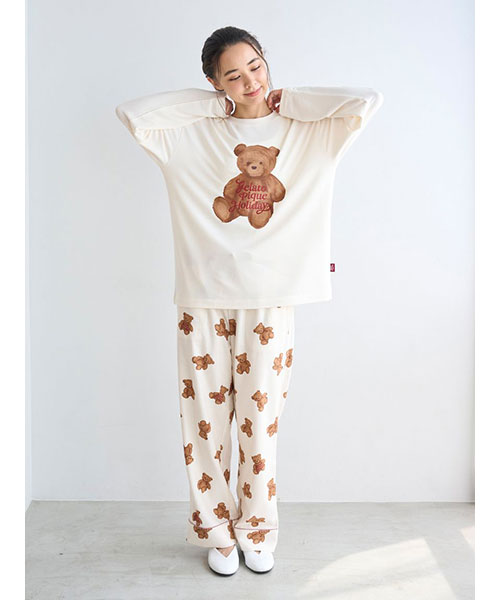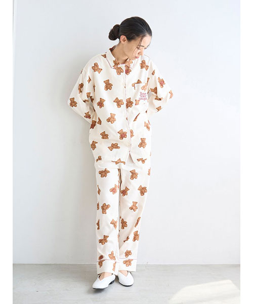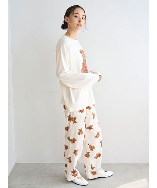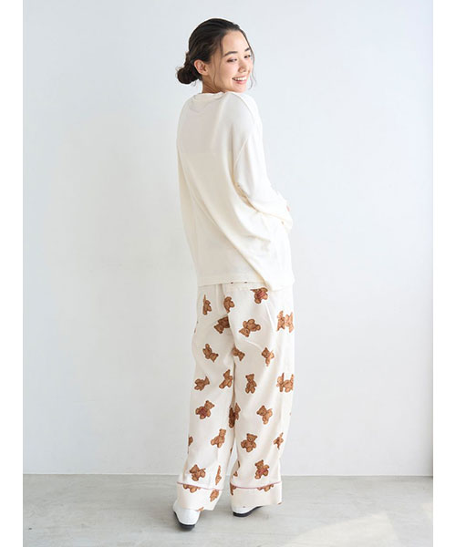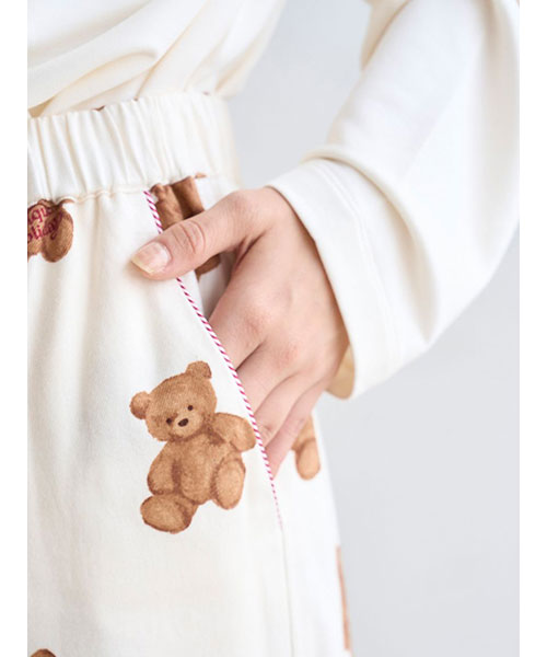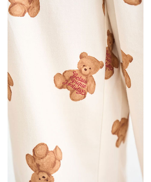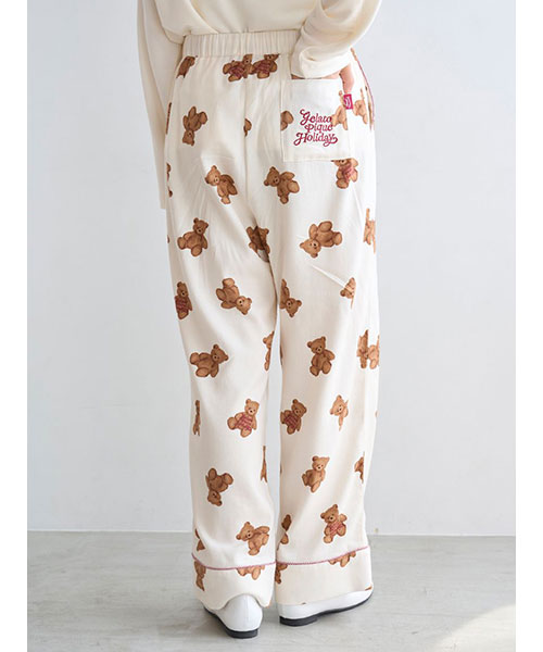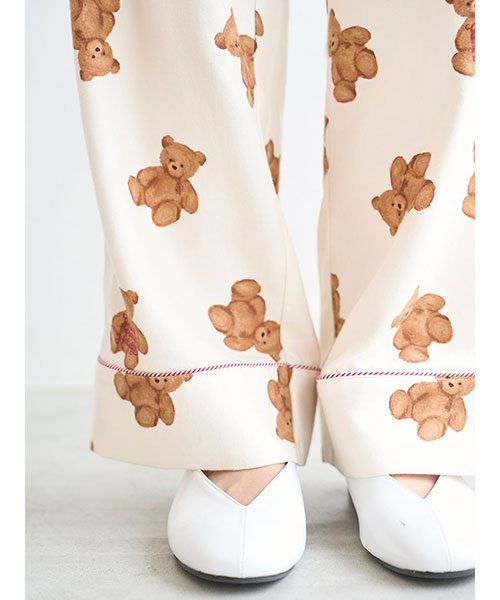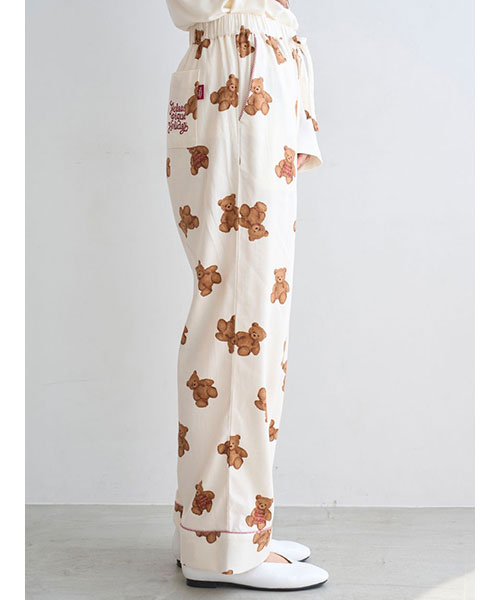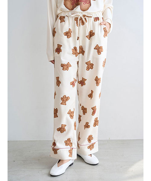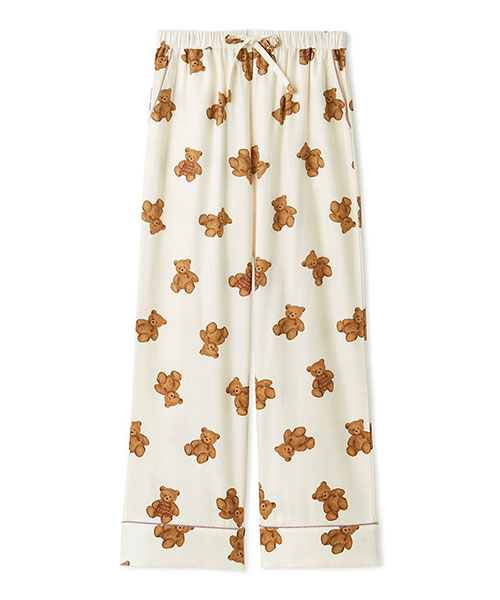 【HOLIDAY・大きめベア柄が印象的な柔らかいネルロングパンツ】【Fabric】
