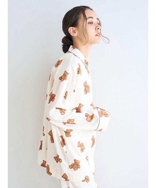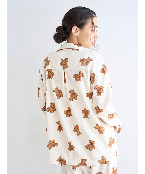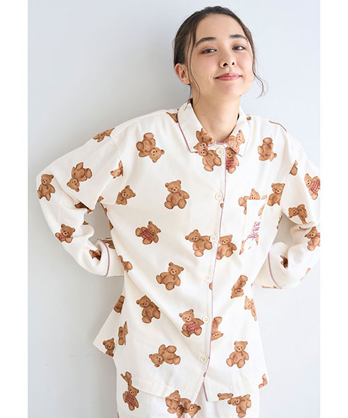 【HOLIDAY・大きめベア柄が印象的な柔らかいネルシャツ】【Fabric】