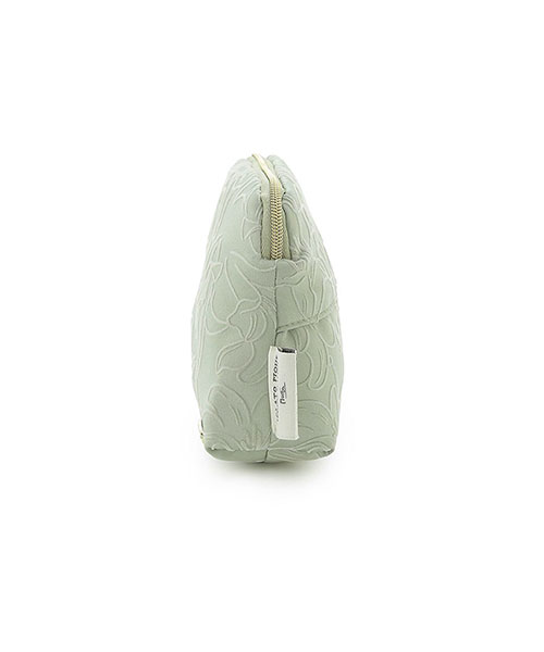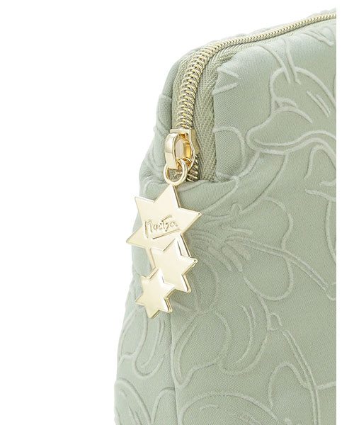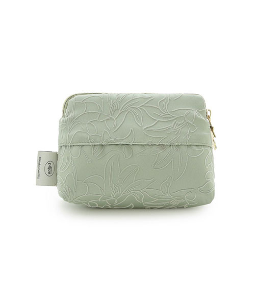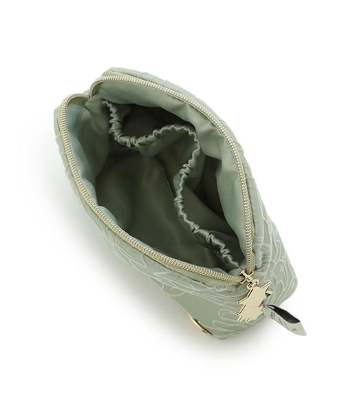 チェコの画家アルフォンス・ミュシャとgelato piqueによる優雅なコレクションが、この秋再び登場しました。今回のテーマは、ミュシャが表紙や挿絵を手がけた切ない恋物語『トリポリの姫君イルゼ』。作中に描かれたリリーの線画を、フロッキープリントで表現したサテン生地のティッシュポーチです。片手に収まる小ぶりのサイズながら、マチ付きなのでお化粧直しのちょっとしたメイク用品なら収納可能。絶妙なアクセントを添えるファスナーの引き手は、作品の表紙デザインにも登場する星をモチーフにしました。フロント左下にロゴ入りのプレートもあしらっています。色はヴィンテージ感あふれるグリーンとブラウンの2色展開。同シリーズの雑貨と組み合わせて、ギフトにもおすすめのアイテムです。