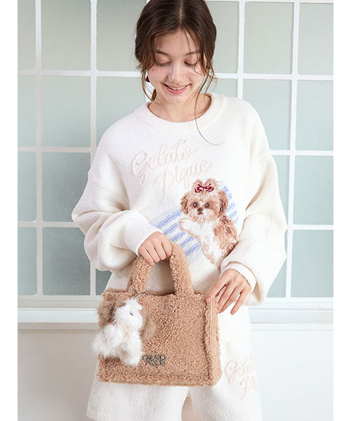 キュートなシーズーを描いたウェアシリーズと連動した小物シリーズです。毛足の長いシーズーをふわふわのファーで表現した、愛くるしいぬいぐるみチャーム。ブランロゴを刻んだシルバーチャーム付きで、バッグやポーチなど様々なところに付けやすいサイズ感。同シリーズのウェアや雑貨とコーディネートしたり、シーズー好きな方へのギフトにもおすすめです。