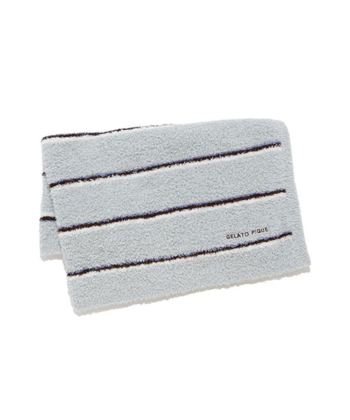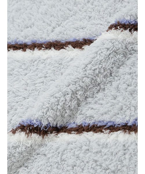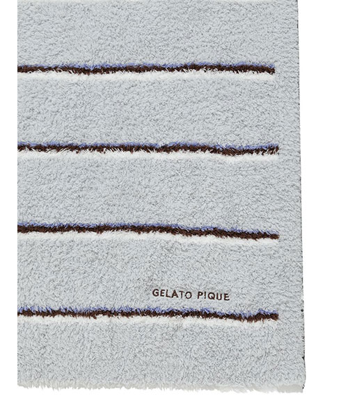トレンドの細いピッチのボーダー柄を、毛足の長いもこもこ素材’ジェラート’に落とし込んだシリーズです。’ジェラート’素材ならではのふわふわな肌触りをお楽しみいただけるブランケットは、膝掛けや肩掛けにちょうど良い手頃なサイズ感。ワンポイントでブランドのロゴ刺繍も入っています。細いピッチの中にもしっかり配色を効かせて、今っぽいスクールテイストに仕上げました。色は甘いジェラートのようなアイボリーとピンク、ブルーの3色展開。同シリーズのルームウェアと合わせたり、ギフトにもおすすめのアイテムです。