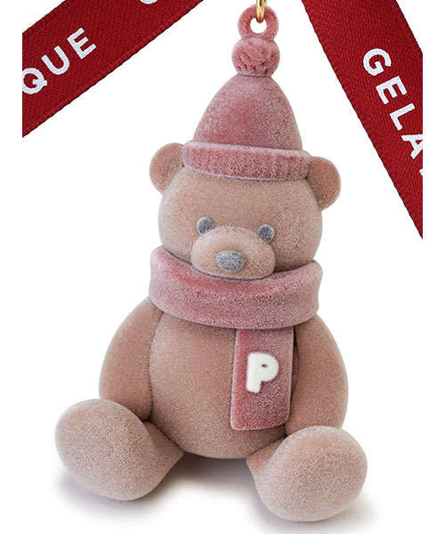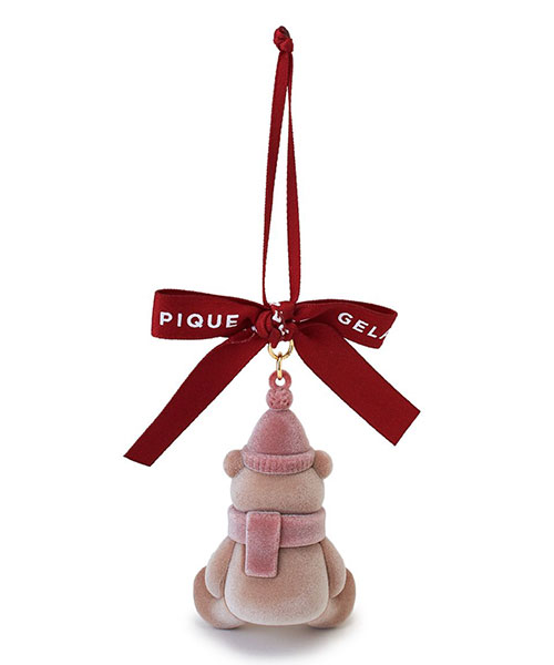 家族や友人、大切な誰かと過ごす温かなホリデーシーズンに寄り添う、スペシャルな小物シリーズです。ニットキャップとマフラーでおめかしした、ベアのぬいぐるみ型オーナメント。ブランドロゴ入りの赤いリボンを添えて華やかに仕上げました。ご自宅のクリスマスツリーに飾ったり、お好みの場所に吊るしてインテリアとしてお楽しみください。