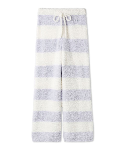 秋冬シーズンに似合うこっくりとした色合いで仕上げた、定番もこもこ素材‘ジェラート’の2色ボーダーシリーズです。足元までふっくらと包み込んでくれるストレートのロングパンツは、春先まで長くお楽しみいただけるアイテム。右後ろにポケット付きで、左腰にさりげなくロゴ刺繍が入っています。色はピンク、ブルー、モカの3色をご用意。同シリーズのパーカや小物と合わせてお楽しみください。