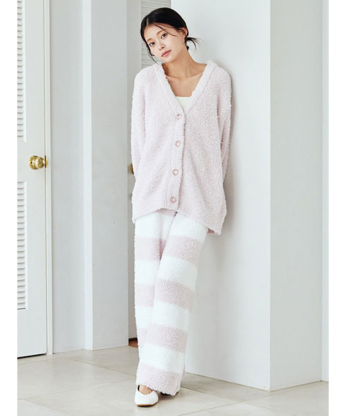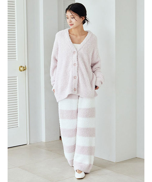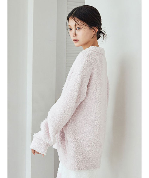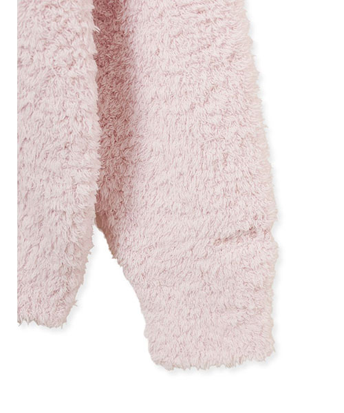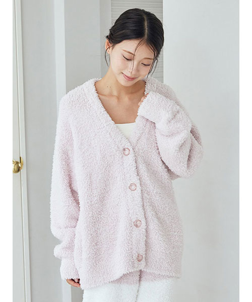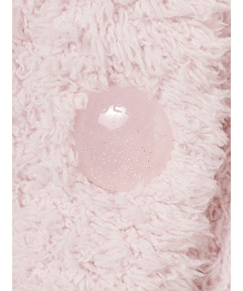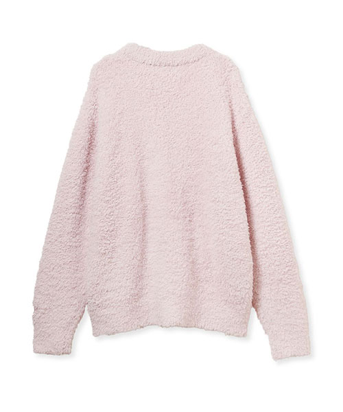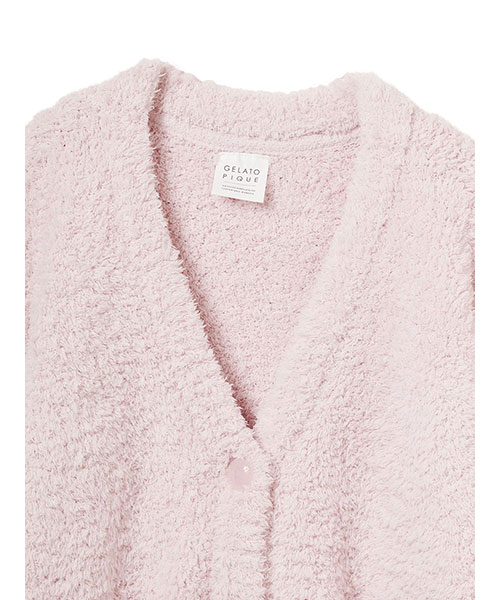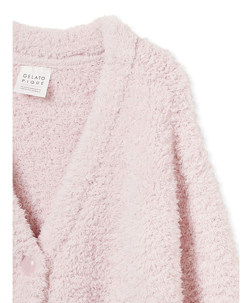 秋冬シーズンに似合うこっくりとした色合いで仕上げた、定番もこもこ素材‘ジェラート’の無地カーディガンです。ふんわりと羽織れるゆったりサイズで、ブランドロゴが刻印されたラメ入りの釦がポイント。左袖口にロゴ刺繍も入っています。色はピンク、ブルー、モカの3色をご用意。同時期に展開するリボン柄カットソーのシリーズとのコーディネートがおすすめです。