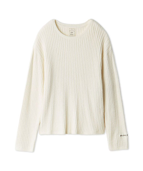 季節の変わり目にうれしい、なめらかな’調温スムーズィー’を使用した大人っぽい雰囲気のリブニットシリーズです。身体のラインが美しく出るように、細すぎず太すぎないリブ目で仕上げたプルオーバー。同シリーズのロングパンツと合わせた時にヒップラインが綺麗に見えるよう、少し短めの動きやすい着丈になっています。左袖口にはさりげなくロゴ刺繍も添えました。袖を通すたびにほっとするような、しなやかな着用感をお楽しみください。色はクリーム、ミント、ダークグレーの全3色をご用意。同シリーズのロングパンツとセットアップで着用いただけます。