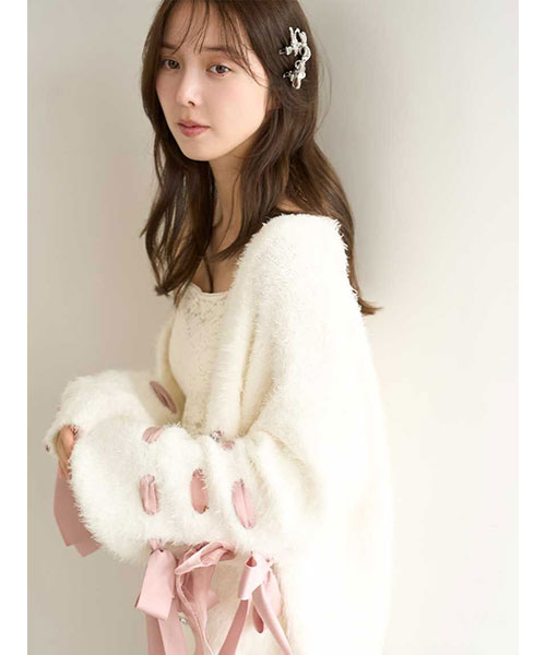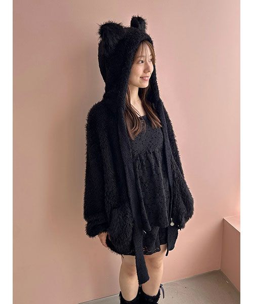 マジカルなラビットや黒猫をモチーフにした耳付きのパーカや、リボンやニットレースのドリーミーな存在感。