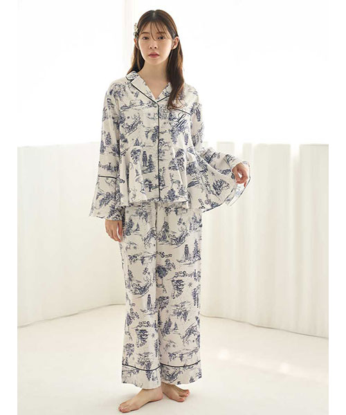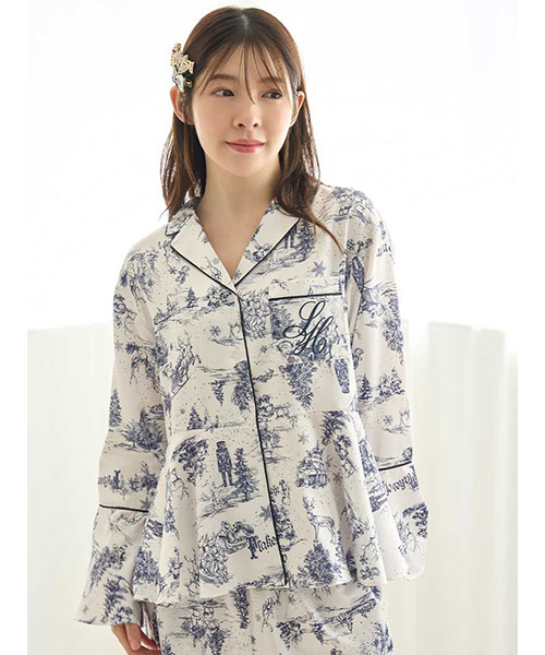 ソリに乗ったサンタクロースやトナカイなど、ホリデーシーズンにぴったりなトワル・ド・ジュイプリントのパジャマシリーズです。