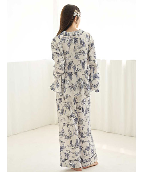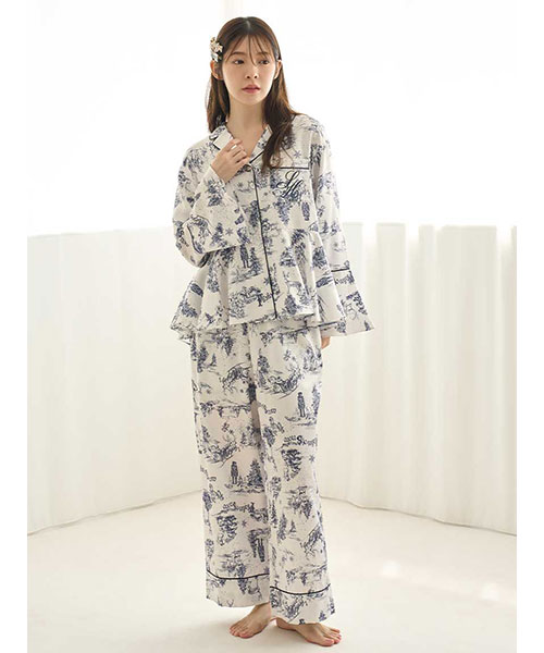 ホリデーの特別なトワル・ド・ジュイ柄ロングパンツ