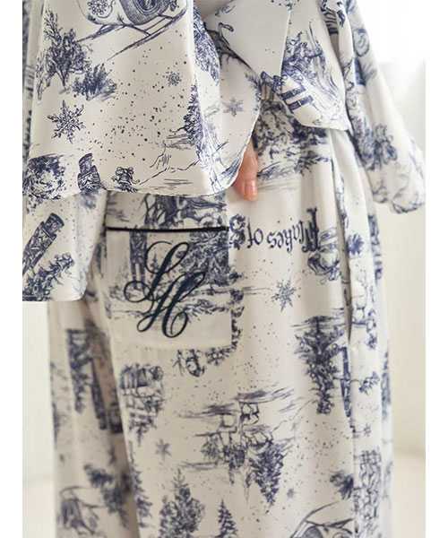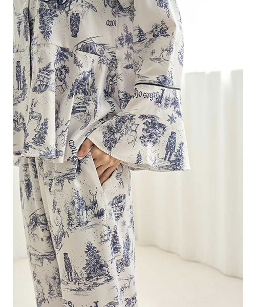 ソリに乗ったサンタクロースやトナカイなど、ホリデーシーズンにぴったりなトワル・ド・ジュイプリントのパジャマシリーズです。