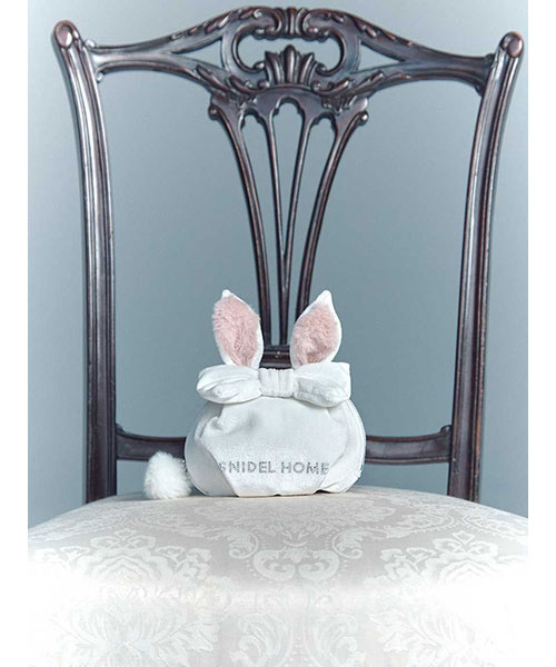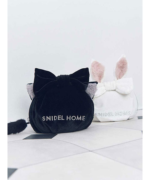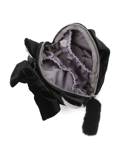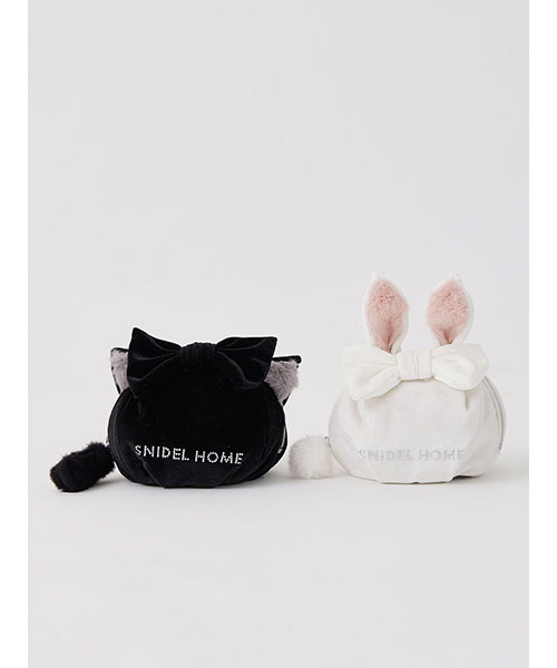 なめらかで上品な光沢感のあるベロアを使用した、思わず触れたくなる耳付きポーチ。