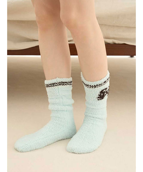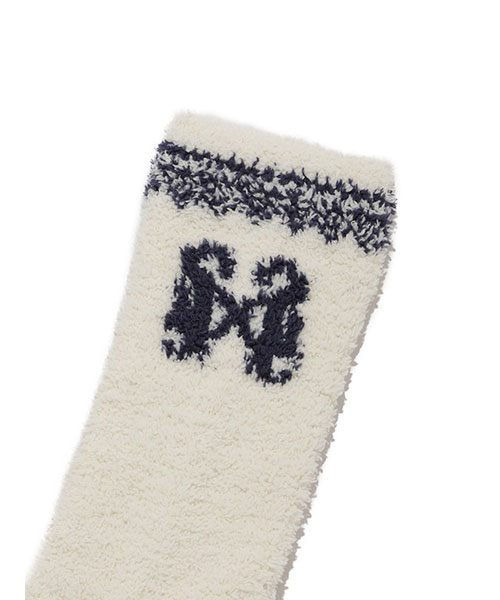イニシャルロゴをワンポイントであしらったルームソックス。