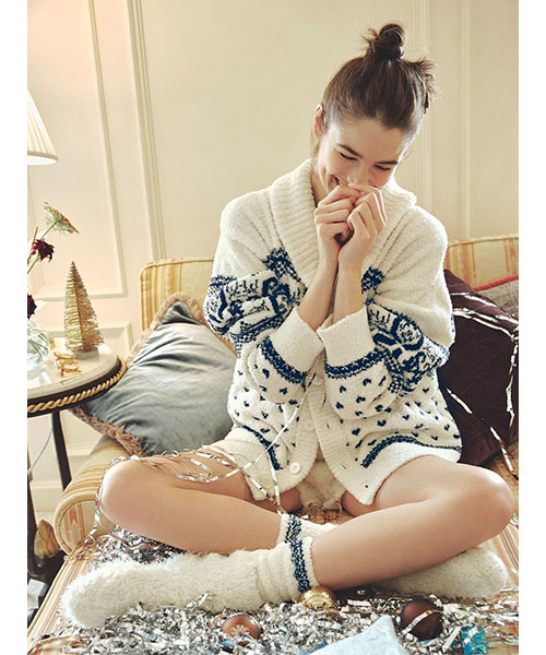 SNIDEL HOMEのイニシャルやハート模様などを取り入れた、コージーなノルディック柄ニットシリーズです。