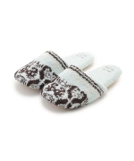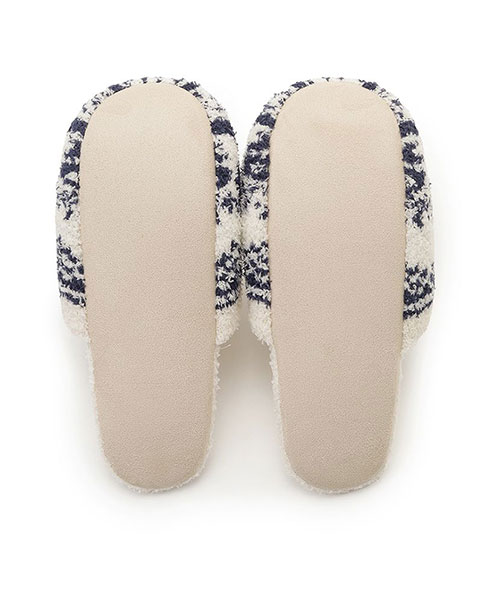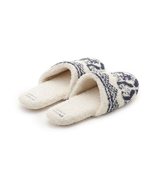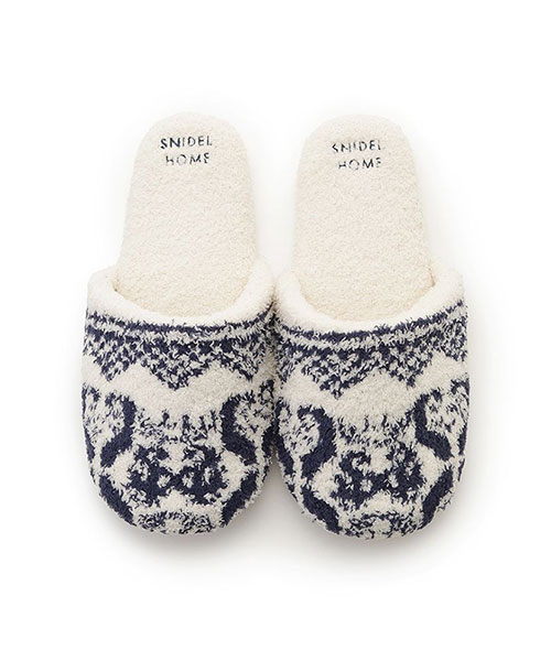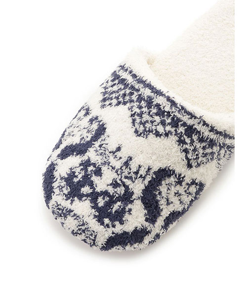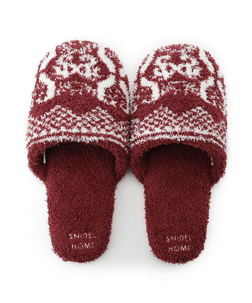 アッパーの部分に季節感のあるノルディック柄をあしらった、ふっくらとしたはき心地のスリッパ。