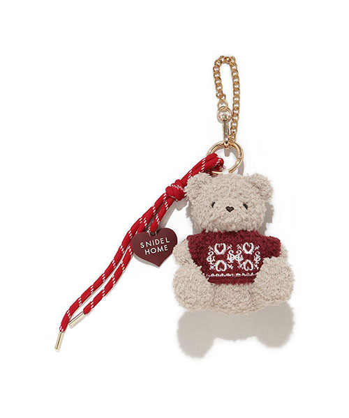ルームウェアとお揃いのニットを着たベアがキュートなぬいぐるみチャーム。