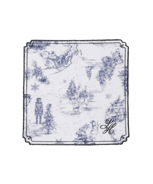 ソリに乗ったサンタクロースやトナカイなど、ホリデーシーズンにぴったりなトワル・ド・ジュイプリントのハンドタオルです。