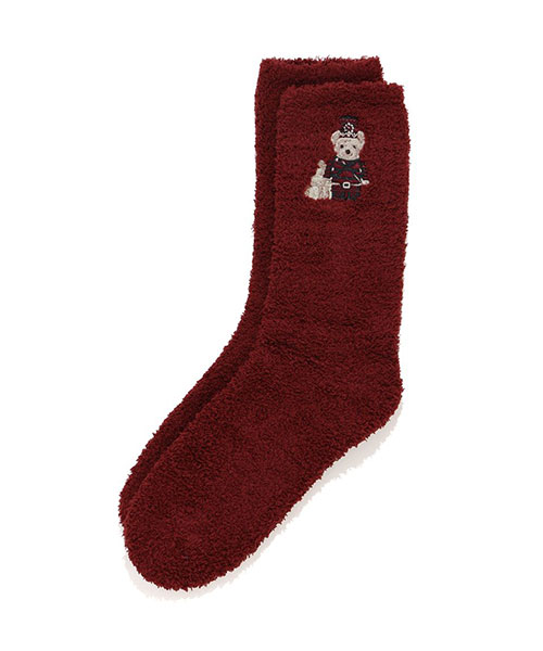 ホイップのように柔らかくなめらかなニットを使用した、ワンポイントのベア刺繍入りルームソックス。