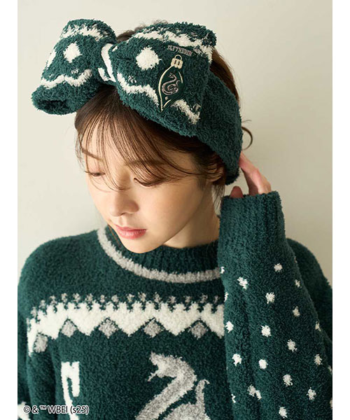 各寮のシンボルをワッペンであしらった、ウェアと同じジャガード柄入りのヘアバンド。