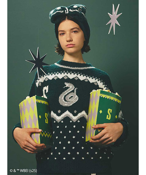 物語の世界へといざなうメインアイテムは、ホグワーツ魔法魔術学校の4つの寮をモチーフにした温かなニットウェア。
