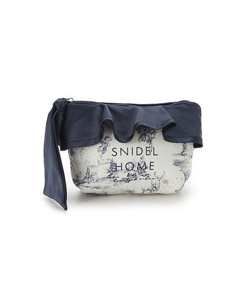 ソリに乗ったサンタクロースやトナカイなど、クリスマスを思わせるロマンティックな絵柄を総柄プリントしたポーチです。