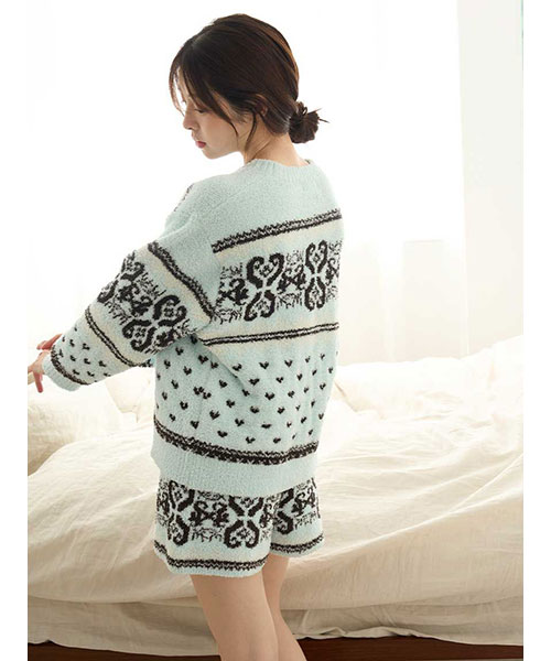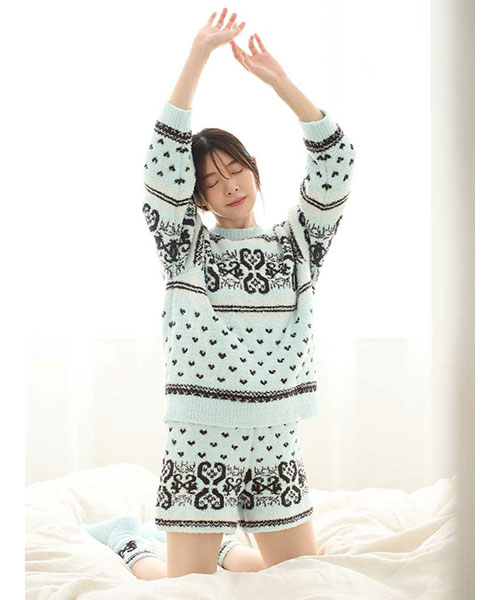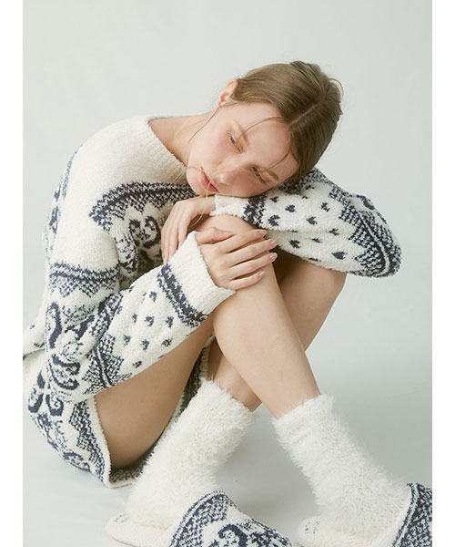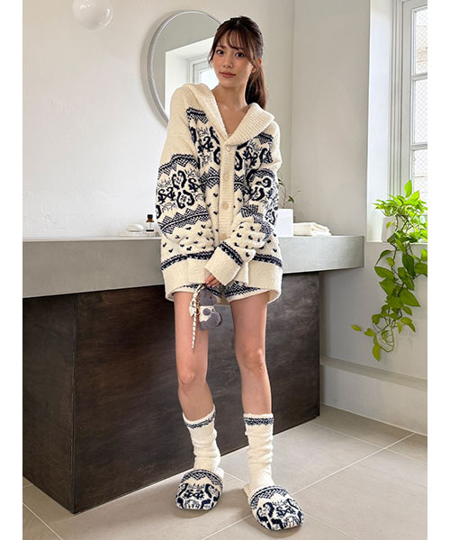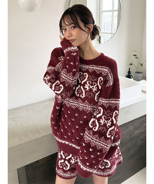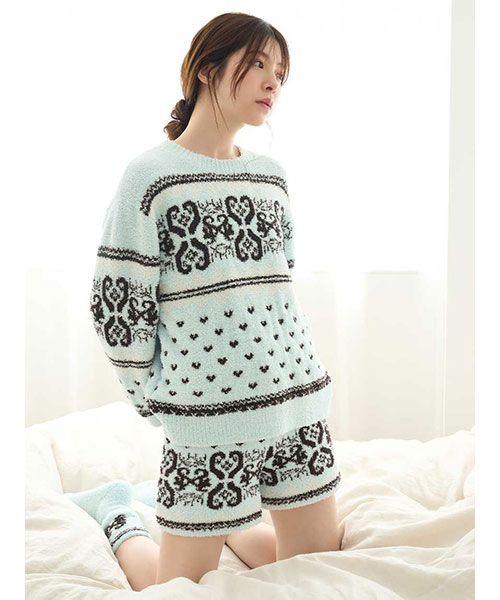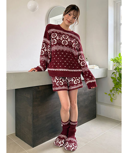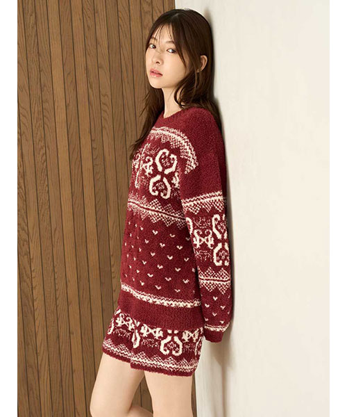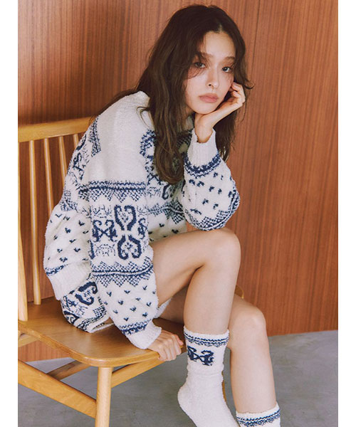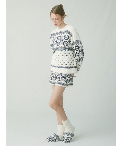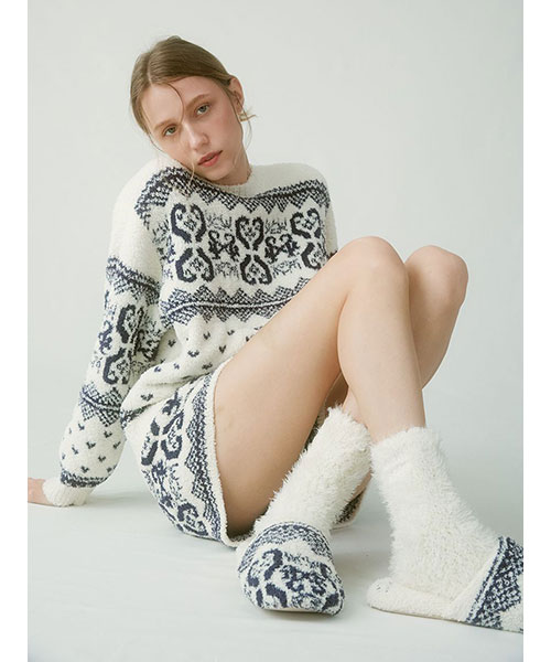 SNIDEL HOMEのイニシャルやハート模様などを取り入れた、コージーなノルディック柄ニットシリーズです。
