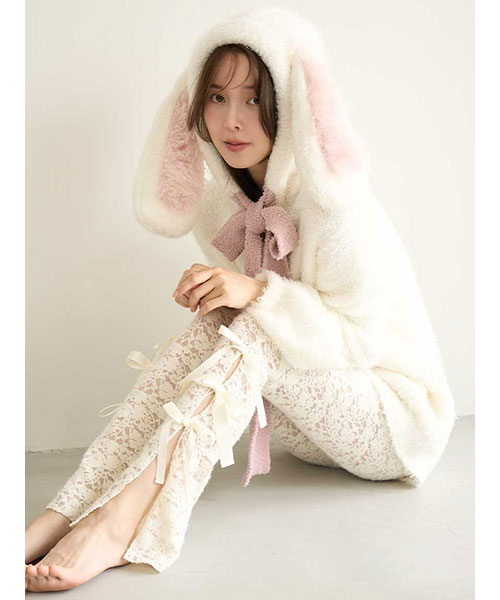 マジカルなラビットや黒猫をモチーフにした耳付きのパーカや、リボンやニットレースのドリーミーな存在感。