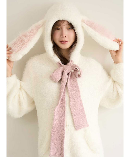 ホワイトはラビット、ブラックは黒猫をモチーフにしており、フードにそれぞれの耳を立体的にあしらっています。