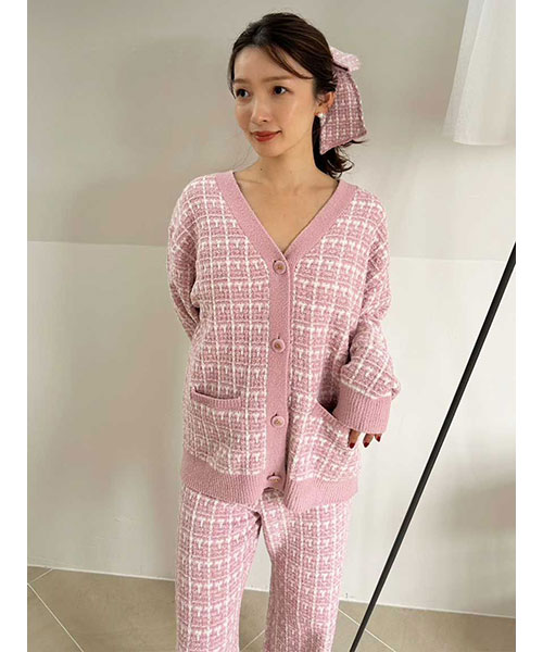 金ロゴボタンが上品なツィードニットカーディガン【Design/Styling】