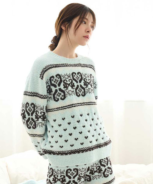 SNIDEL HOMEのイニシャルやハート模様などを取り入れた、コージーなノルディック柄ニットシリーズです。