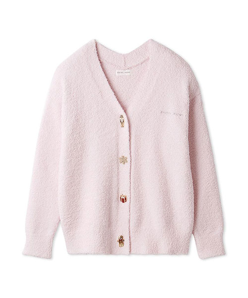 ホイップのように柔らかくなめらかなニットを使用した、カラフルなデザインボタン付きのカーディガン。