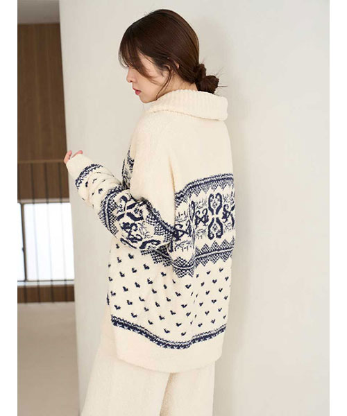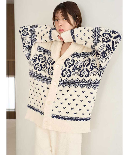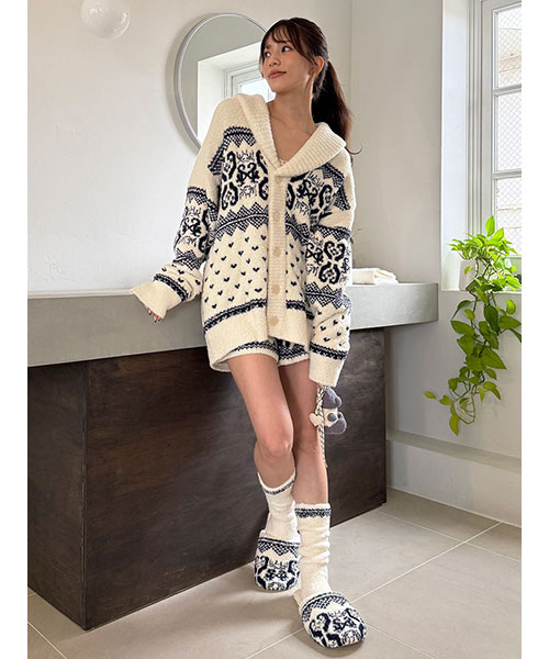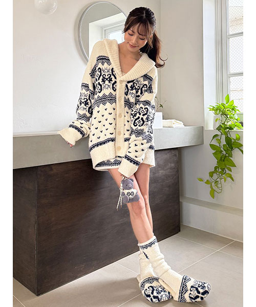 SNIDEL HOMEのイニシャルやハート模様などを取り入れた、コージーなノルディック柄ニットシリーズです。