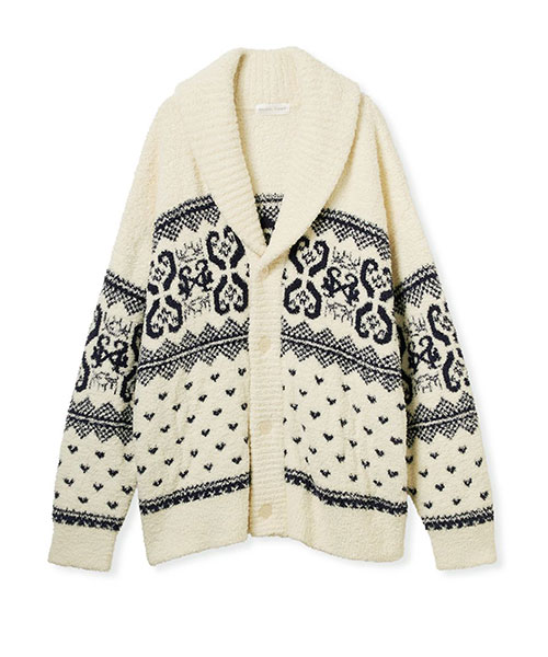 ふっくらとした柔らかなニットを使用した、性別を問わずご使用いただけるUNISEXサイズのショールカーディガン。