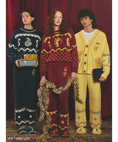 物語の世界へといざなうメインアイテムは、ホグワーツ魔法魔術学校の4つの寮をモチーフにした温かなニットウェア。