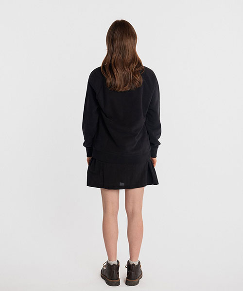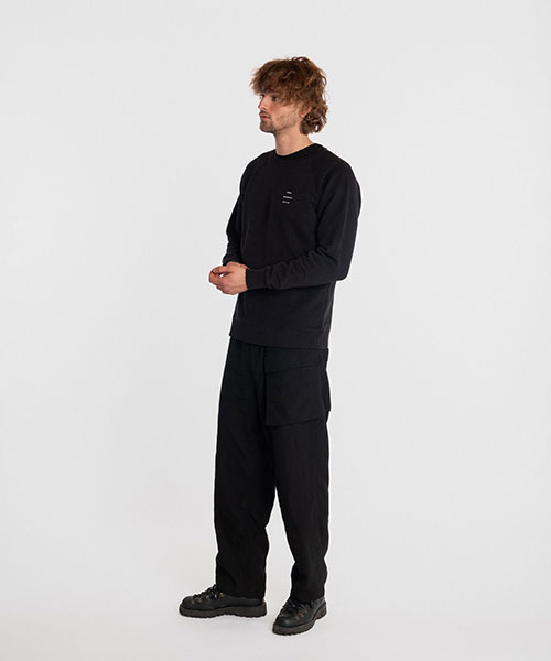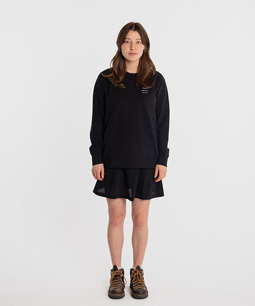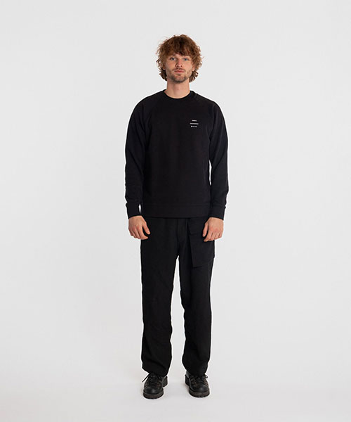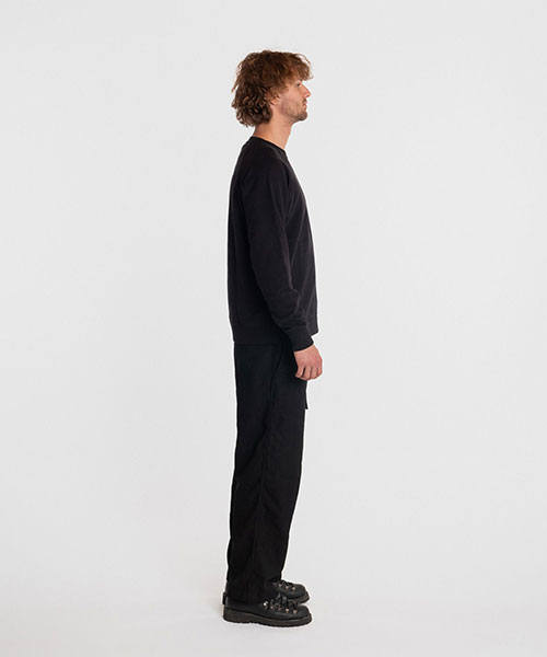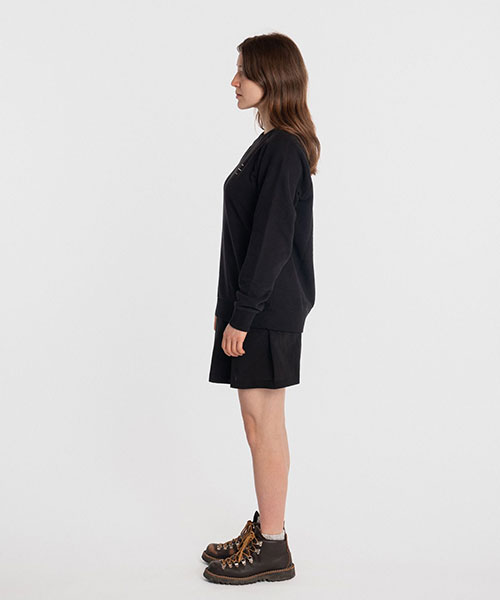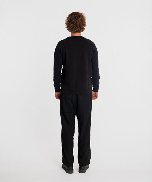 ミッドウェイトの100%オーガニックコットンを使用し、カーボナイズド加工によって高い安定性を実現したスウェット。縮みを防ぐために工場洗いが施されており、フラットロックシームで縫い目のごわつきも軽減しています。表面はソフトタッチ仕上げで、裏地には肌あたりの良いテリーループを採用。さりげないコラボレーションロゴもポイントです。シンプルで飽きのこないデザインと抜群の着心地で、年間を通じて活躍する定番アイテムとしておすすめです。