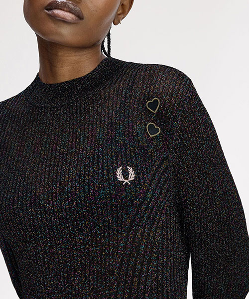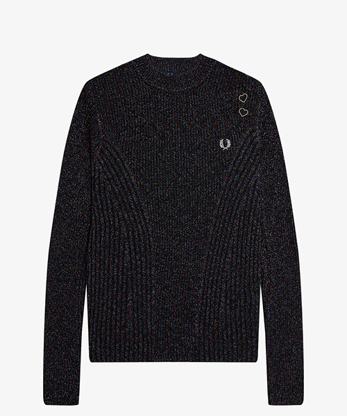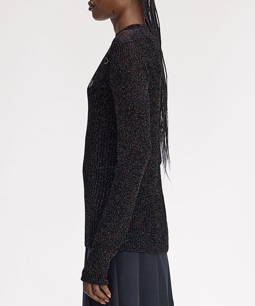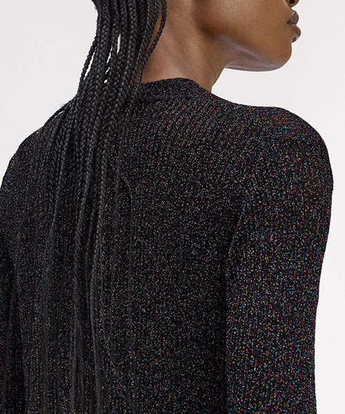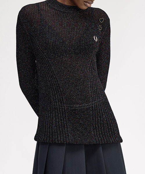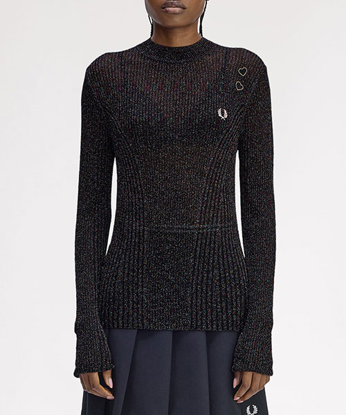 今シーズンも引き続きエイミーのレンズを通したコレクションを展開します。シアーなニットトップス。全体に散りばめられたカラフルなラメ糸がデザインの特徴です。BRAND CONCEPT