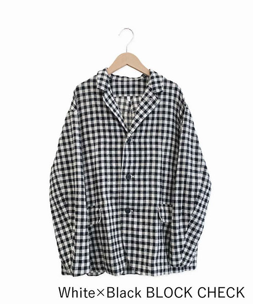 コットン&リネン・チェックシーチング テーラードジャケット