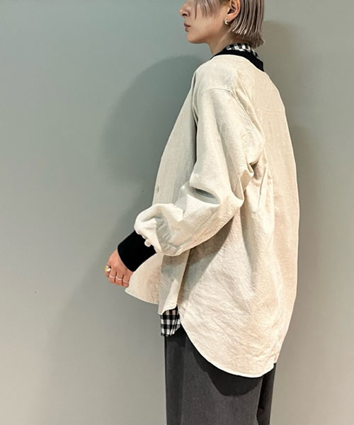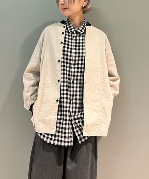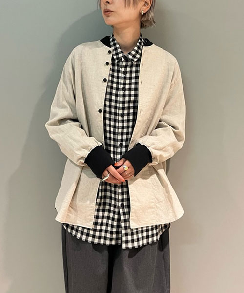 コットン&リネン・チェックシーチング リブシャツ