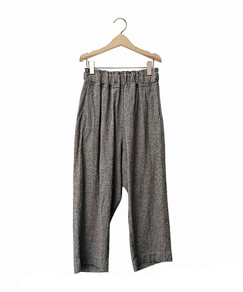 コットン&リネン・チェックシーチング ワイドストレートパンツ