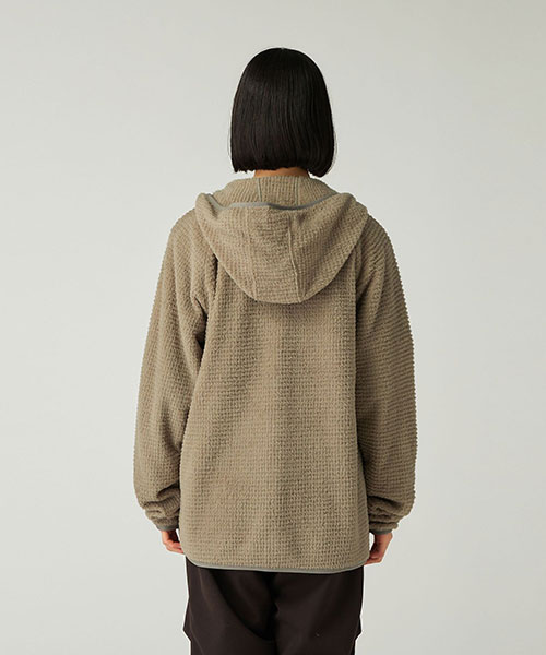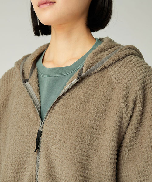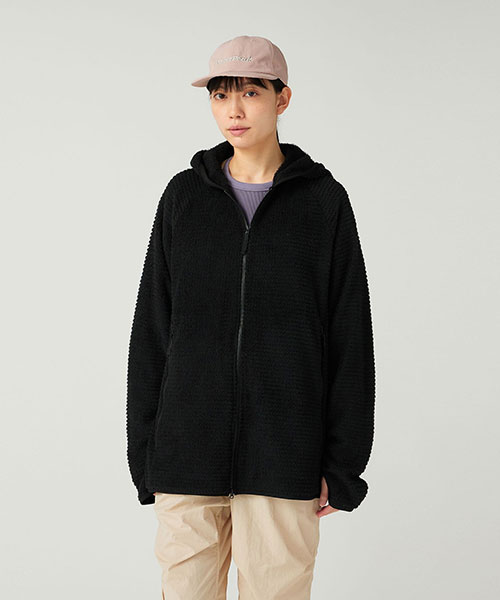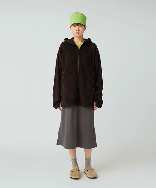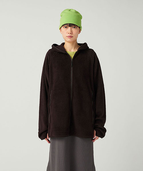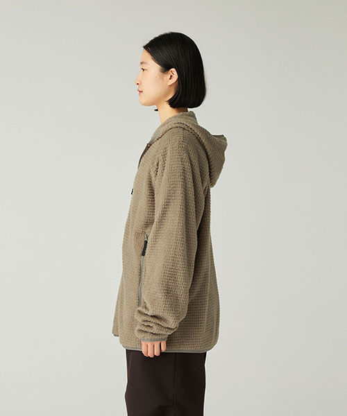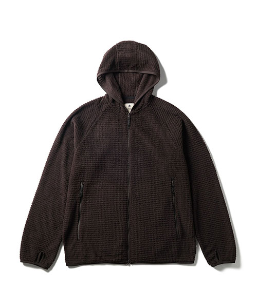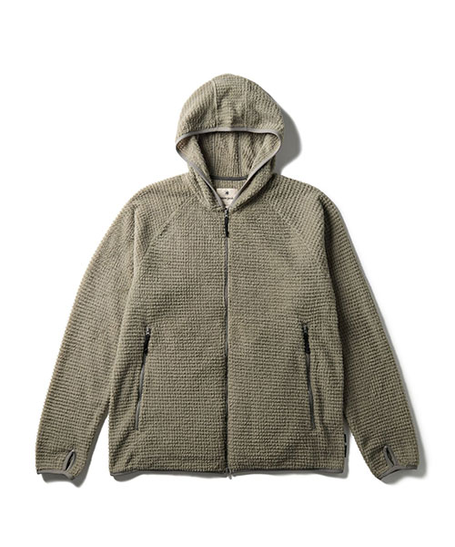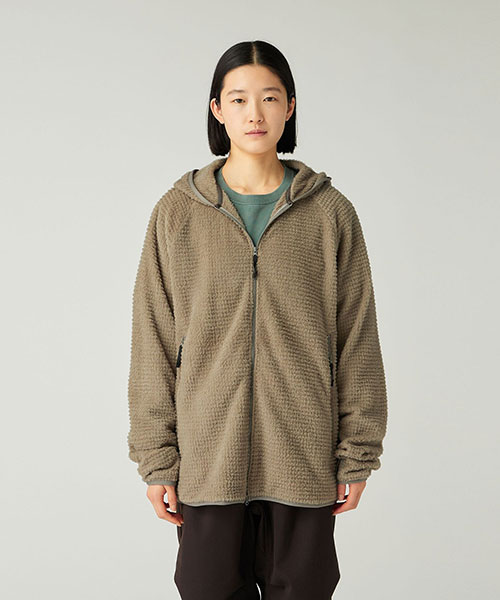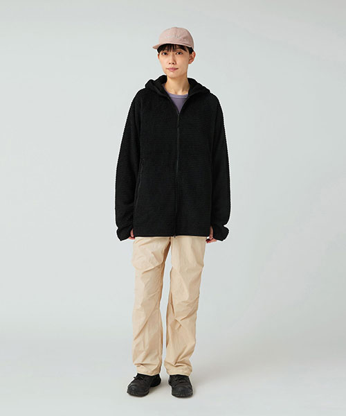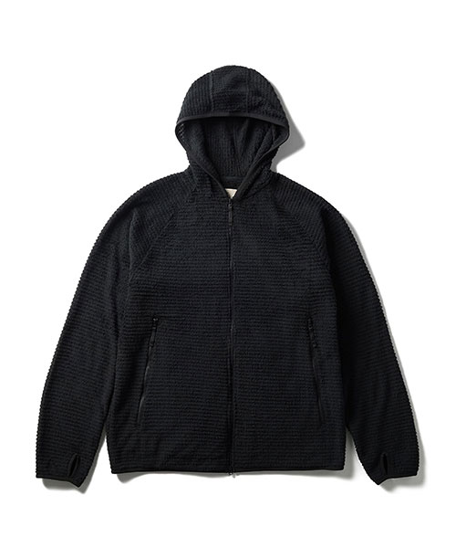 ふわふわタッチで優しい着心地。着脱もスムーズで快適なジップアップパーカー。保温性と通気性を両立した、スウェット感覚で着られる手軽な超軽量ミドラーシリーズ「Thermo Control」素材は、POLARTEC社の「ALPHA DIRECT」を使用。ポーラテックアルファダイレクトの中でも厚手の生地を用いていて、高い保温性を備えつつ、メッシュ構造であるゆえに高い通気性を発揮。熱気や湿気が篭もることなく、快適な環境を保ちます。また優れた速乾性で、汗や小雨で濡れてしまった場合にも保温力が低下しづらいのも特徴です。カラーはブラック、ダークブラウン、グレーの3色をラインナップ。性別や体型を問わない5つのサイズをそろえましたあらゆるシーンで万能に使える、フード付きのジップアップパーカー。保温力と通気性を活かし、春や秋にはアウターとして快適に着られ、気温が低下した時は上にアウターを羽織ることで、熱を閉じ込めて暖かさを保ちます。フロントはシルエット調整とベンチレーションを併せ持つ、ダブルスライダー仕様。脇には収納物の落下を防ぐファスナーポケット付きです。袖口は、手の保温や日焼け対策にもなるサムホールを設けました同シリーズのパンツと備えておけば、トラベルにもキャンプにも活躍します