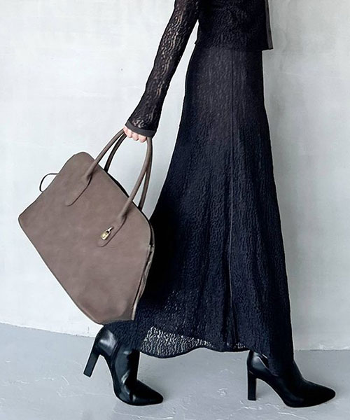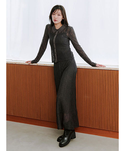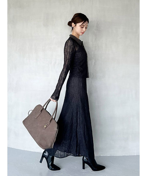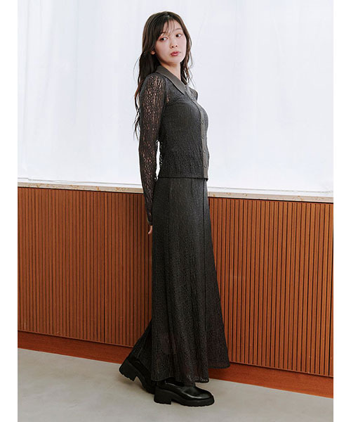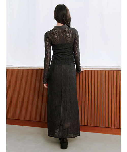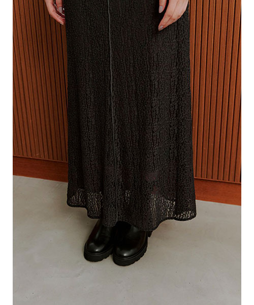 繊細なカットソーレース生地で今季らしい透け感を演出した、着心地の良さとエレガントな見た目を両立させたナロースカートがお目見え。腰回りはフィット感がありすっきりとしており、裾に向かってほんのりと広がるナローシルエットが女性らしさを引き立てるロングスカートです。伸縮性のある生地なので締め付けなくすっきりとご着用いただけます。また、ウエスト位置は裏側に太ゴムを配置しており、さっと着脱できて快適にご着用いただける一枚です。フロントの切り替えラインで縦ラインを強調し、美脚効果も抜群。裏地が付いています。共布・同色でカットレースポロブラウス(SWCT254250)もお作りしているのでセットでのご着用もおすすめ。