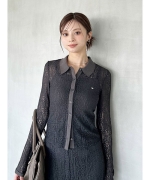 【繊細なカットレースのフェミニンさとシャープな襟が程よいバランスのエレガンスポロブラウス】【Design/Styling】