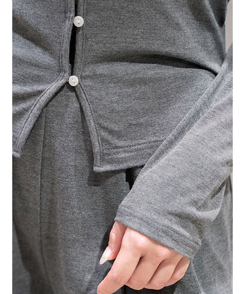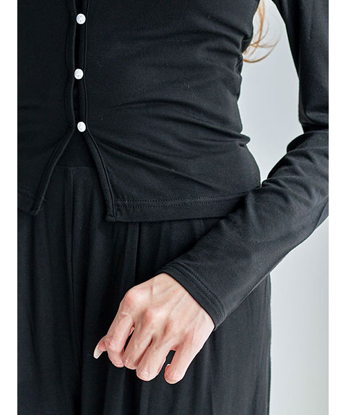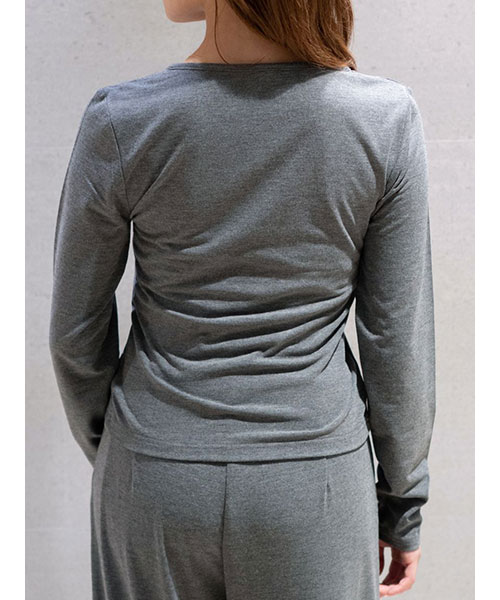 柔らかな伸縮性のあるカットソー素材で仕上げており、着心地は軽やかでストレスフリー。ブラック、グレー、モカの3色展開です。