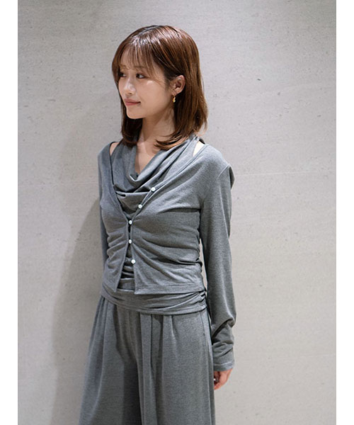 トップスとしても、寒さ除けの羽織としても活躍する万能デザイン。シンプルながら、デイリーコーデに取り入れやすく、1枚あると便利なアイテムです。SWCT254353、SWCP254354とセットアップでの着用もおすすめです。