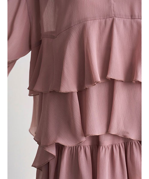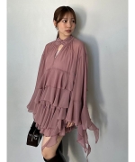 リップルライン=波立つような流れるライン・シルエットが印象的な、トレンド感のある軽やかなシアーブラウスが届きました。胸下2段に施したラッフルのフレアパターンを細かく計算し、動く度に華やかにフリルが流れるデザインに。袖口と裾サイドにはロマンティックな長めのフリルディテールを加えることで、所作を印象的に魅せてくれる一品にしました。生地には凹凸感のある楊柳生地を使用してニュアンスを加え、カジュアルコーデにもキレイめコーデにも合わせやすく仕上げました。胸元はキーホルネックで抜け感を出し、衿周りはねじりを加えて顔周りを印象的に。インナーキャミソールは肩紐の長さ調節が可能。同色・共生生地で展開しているリップルラインミニスカショーパン(SWFP255030)とのコーディネートもおすすめです。