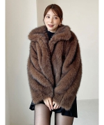 フォックスライクなやや毛足の長いフェイクファーを使用した柔らかな印象のベージュ、フォックスライクなやや毛足の長いフェイクファーを使用したリュクスなブラウン、カールのかかった毛足の長いフェイクファーを使用し、アイボリーベースにブラウンカラーを散りばめたキャッチーなミックスの3色展開。