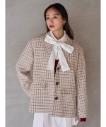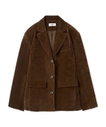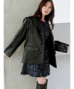 定番人気のマニッシュなオーバーサイズジャケットをヴィンテージ感のある素材でトレンドライクに仕上げました。ブラックはほんのりシワ感のあるフェイクレザー調素材、ブラウンは艶感のあるスウェード調素材、クラシカルなチェック生地の3色展開です。しっかりとパッドの入った大きめの肩巾でモードな印象に。やや太幅の身頃で肩の力を抜いた抜け感を演出しつつ、体型カバーも叶えてくれます。前下がりを高めに設定し、通常のテーラードジャケットよりも少しカジュアル感をアップさせました。フェミニンなワンピースにも、綺麗めなスカートにも合わせやすく、スタイリングをこなれた表情に。左右にフラップポケットを配置。左胸にはフェイクポケットを添えました。