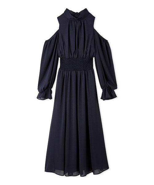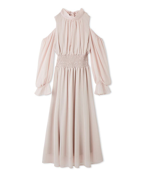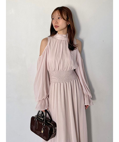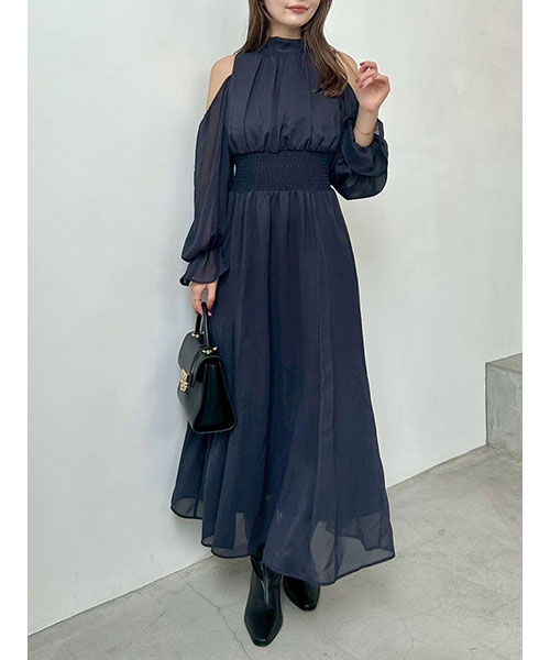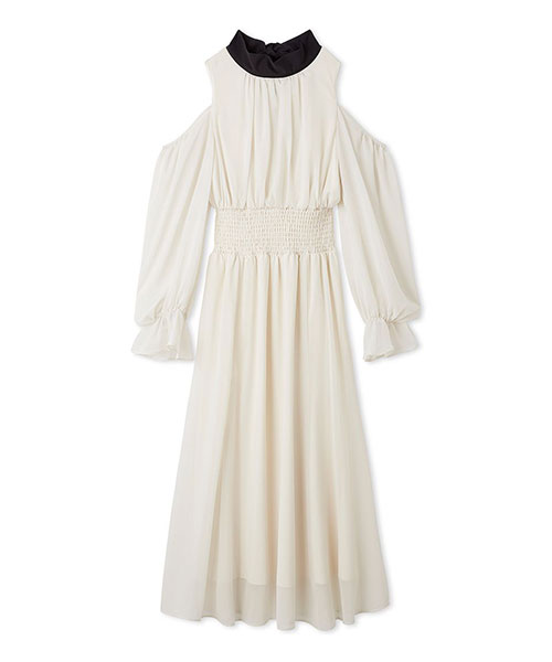 コールドショルダーボウタイワンピース
